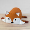 Auf die gleiche Art und Weise werden auch die Ohren appliziert. Wechsele das Stickgarn auf Schwarz und sticke das Gesicht vom Fuchs.