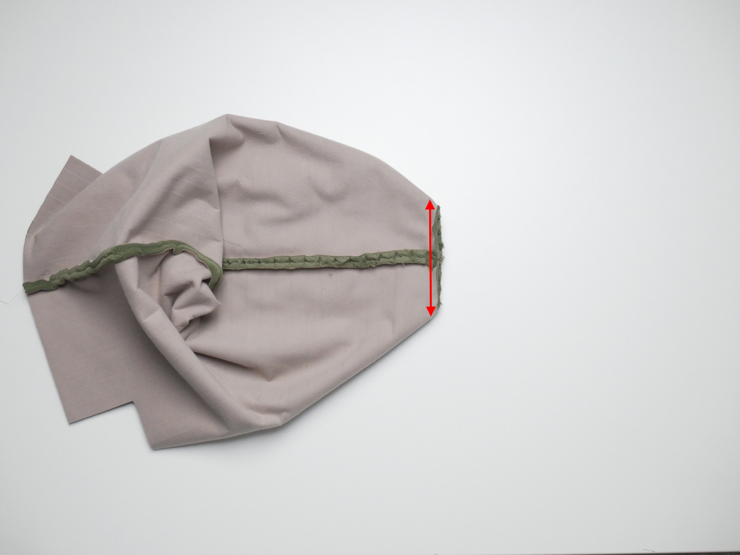Nähe nun wie im Bild zu sehen die untere Kante des oberen Ausschnitts. Die oberen 5 cm bleiben offen.